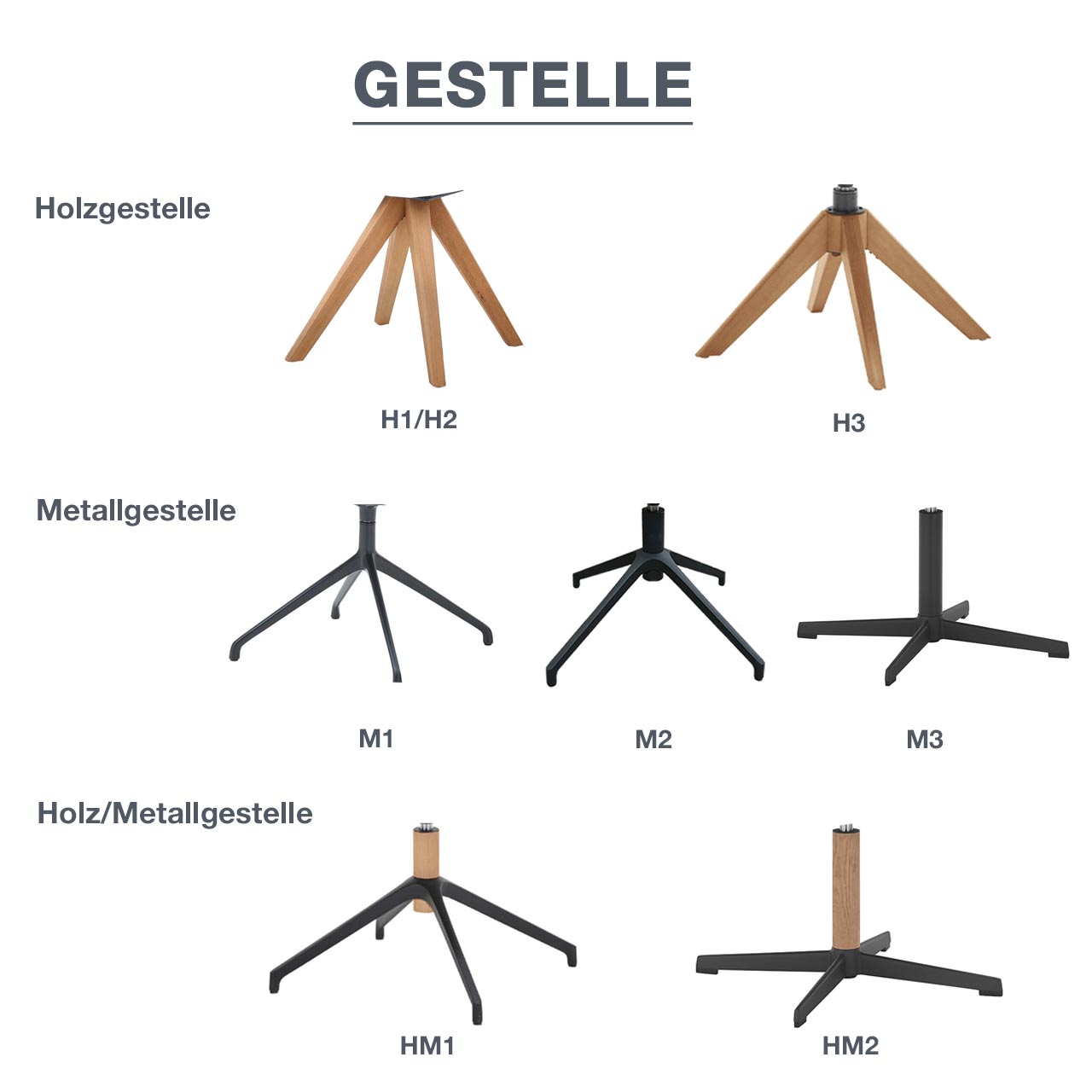 Übersicht - Stuhlgestelle & Funktionen: